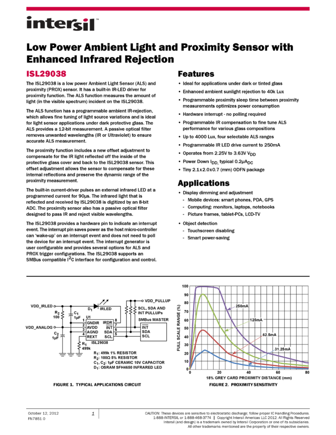 Low Power Ambient Light and Proximity Sensor with Enhanced Infrared Rejection