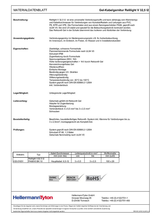 Tuleja kablowa Relicon by HellermannTyton RELILIGHT V32.5 I2 PA66V0 BK10 435-01651, 6.50 - 12 mm, 1 szt.
