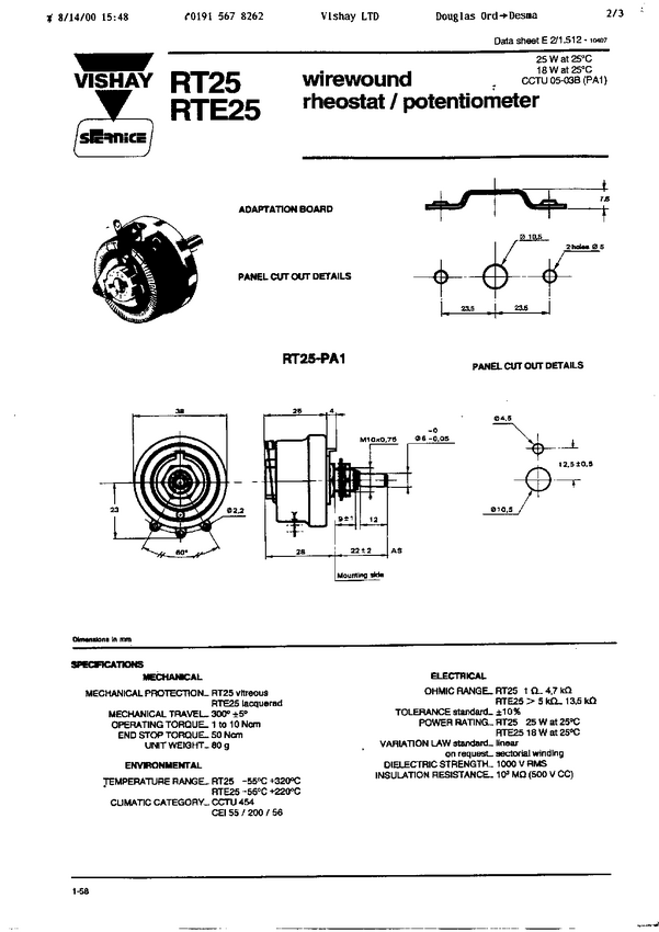 75W - potencjometr drutowy -Reostat -dużej mocy; 1 obrotowy 300stopni, średnica 2,75"=69,25mm; gł.44,45mm; ośka 1/4"=6,3 5mm ze ścięciem; dł.22,23mm Moc 75W; Vmax = 900 V RMS Imax= Rezystancja