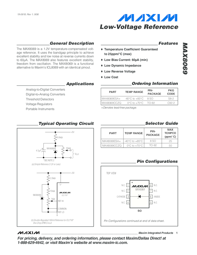 MAX8069 Low-Voltage Reference (Replaces ICL8069)