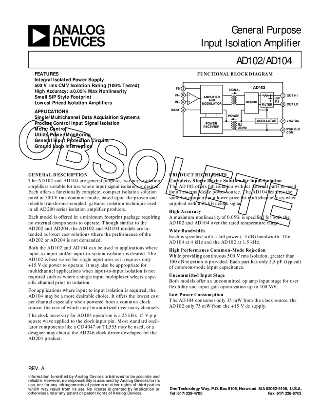 General Purpose Input Isolation Amplifier where input to input isolation is required