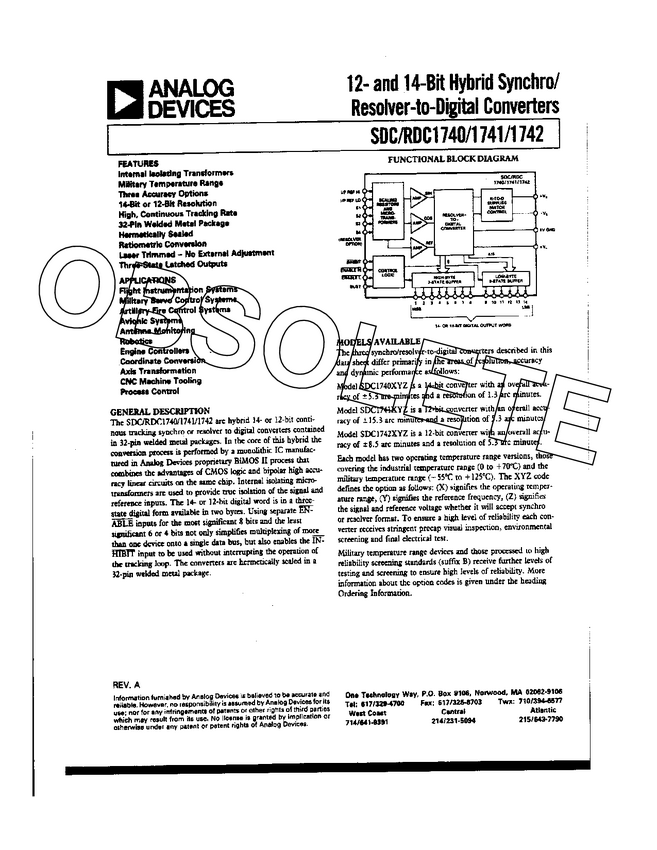 Low Cost, Complete 12-Bit Resolver-to-Digital Converter