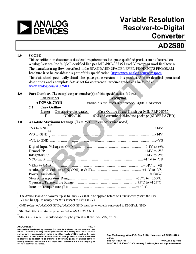 Low Cost, 14-Bit, Dual Channel Synchro/Resolver-to-Digital Converter