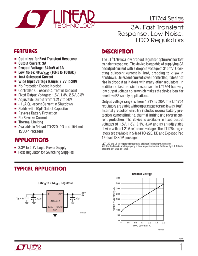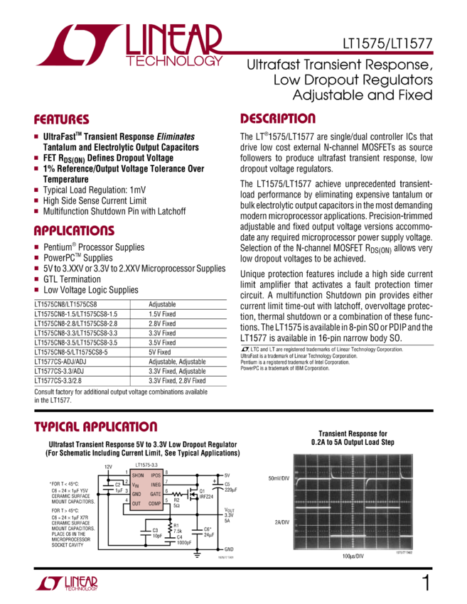 Ultrafast Transient Response, Low Dropout Regulators Adjustable and Fixed