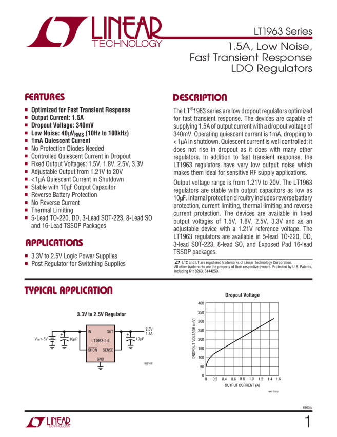 1.5A, Low Noise, Fast Transient Response LDO Regulators