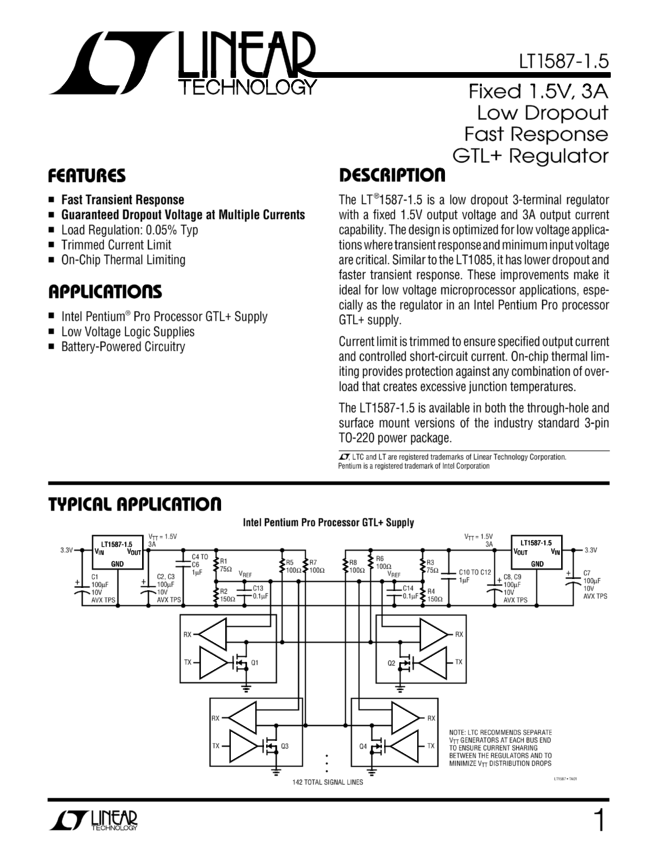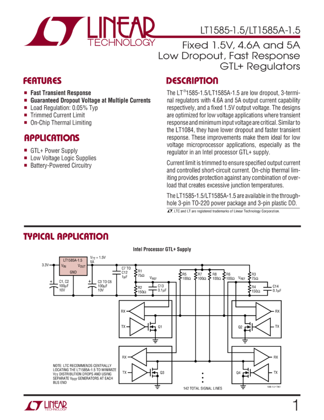 Fixed 1.5V, 3A Low Dropout Fast Response GTL+ Regulator