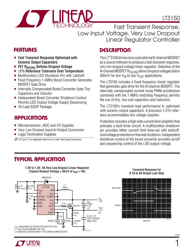 Fast Transient Response, Low Input Voltage, Very Low Dropout Linear Regulator Controller
