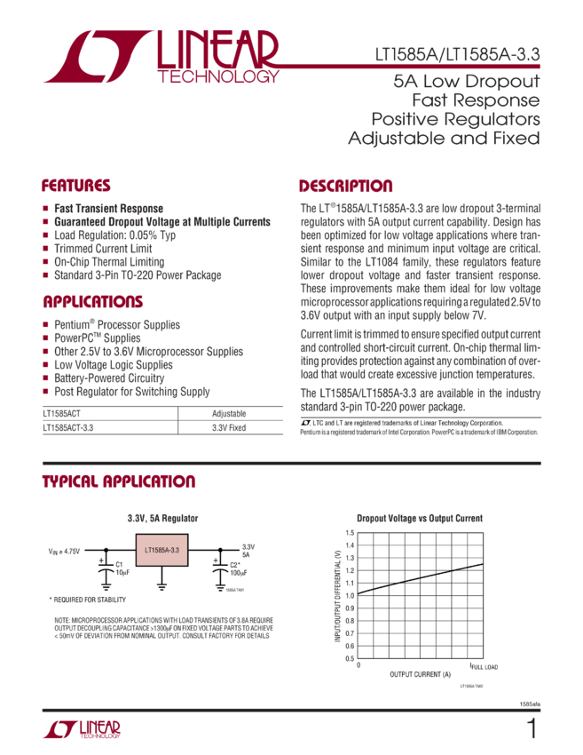 5A Low Dropout Fast Response Positive Regulators Adjustable and Fixed