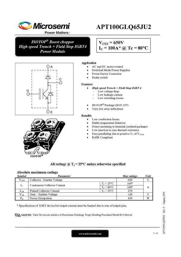 APT100GLQ65JU2 Rev0 Datasheet
