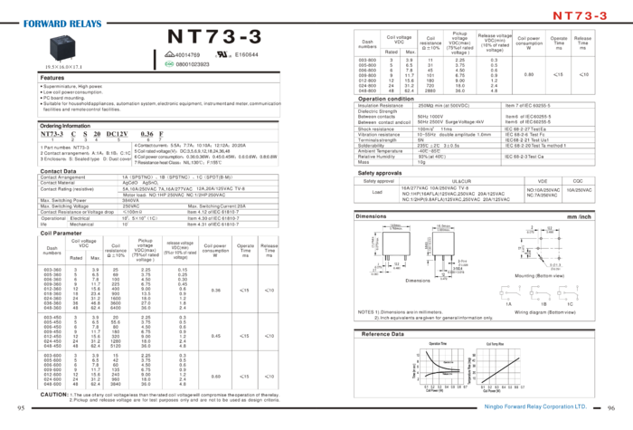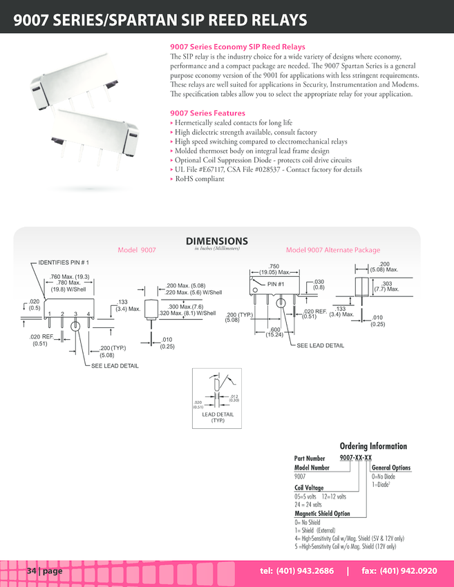 Szybki przekaźnik kontaktronowy, ze stykiem zwiernym, prąd przełączany 0.5A, napięcie przełaczane 200V, napięcie cewki , rezystancja cewki 500Ω, COTO