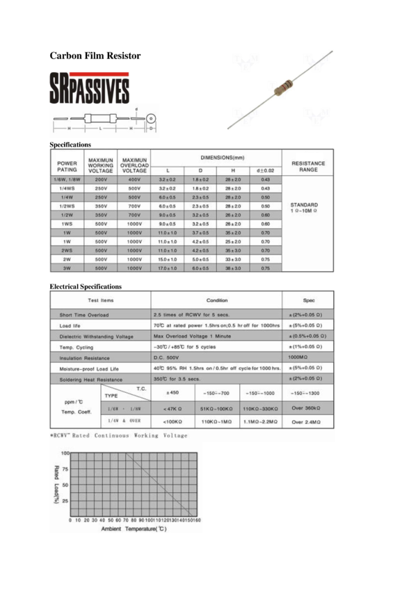 Rezystor węglowy 100kΩ 0.5W 3x9mm