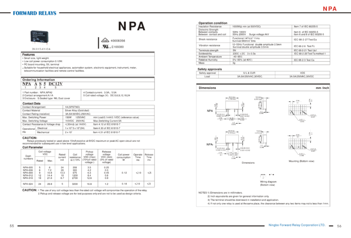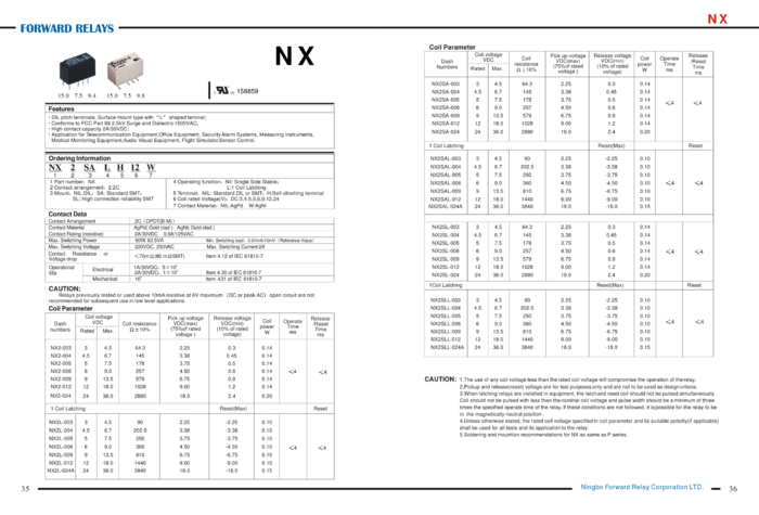 Mało-gabarytowy przekaźnik, , napięcie cewki , o mocy 0,45W, rezystancja cewki 320Ω