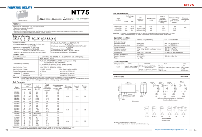 Mało-gabarytowy przekaźnik , 1C, napięcie cewki , rezystancja cewki 90Ω