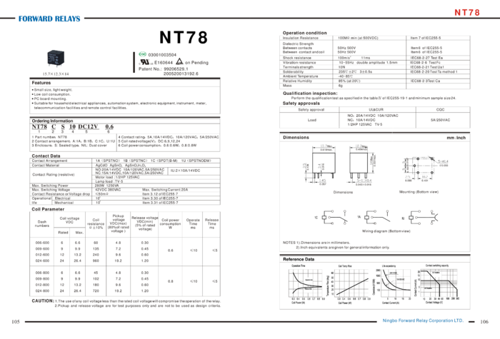 Mało-gabarytowy przekaźnik , ze stykiem przełącznym ( 1C ), , napięcie cewki, , rezystancja cewki 351Ω