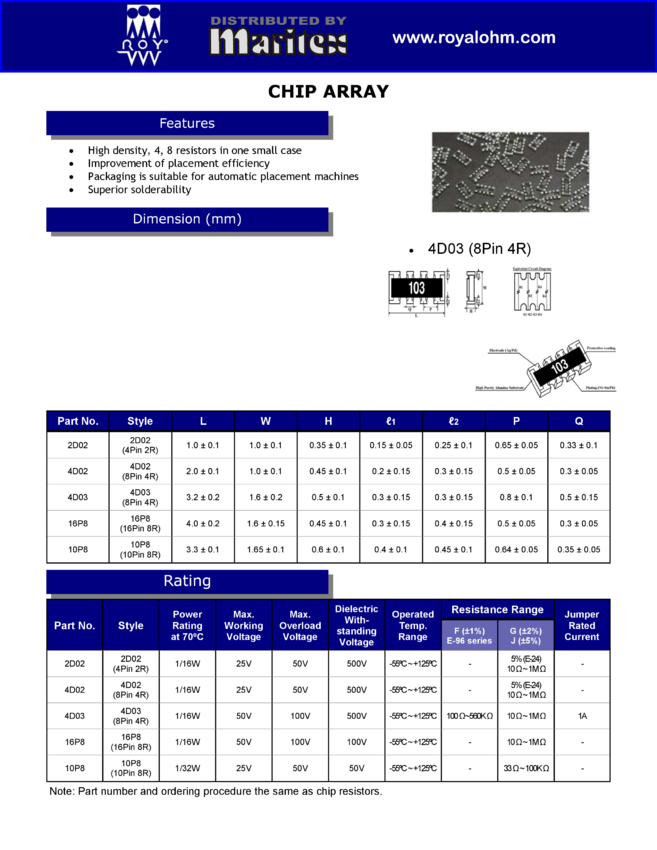 Drabinka rezystancyjna SMD 4 x 10kΩ, 5%, 4x0402 = 0804 Yageo