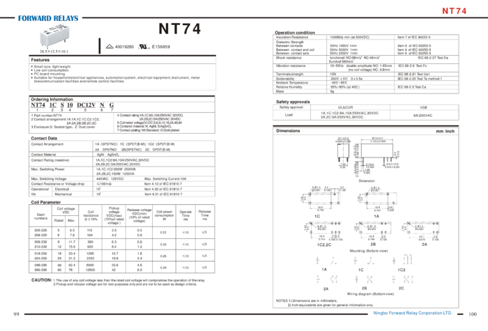 Miniaturowy przekaźnik ze stykiem zwiernym ( 1A ), napięcie cewki , rezystancja cewki 720Ω, 1-biegowy