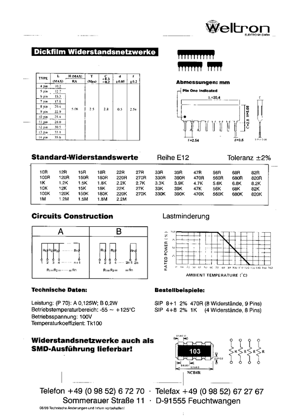 Drabinka rezystancyjna 1 kΩ radialny THD SIP-4+1 0.125 W Yageo RNL05AGB-1K 1 szt.