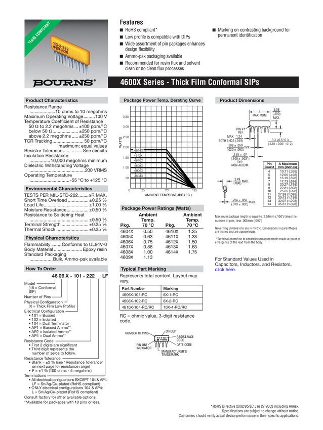 Bourns 4607X-101-103LF 4607X-101-103LF Drabinka rezystancyjna 10 kΩ radialny THD SIP-7 0.2 W 1 szt.
