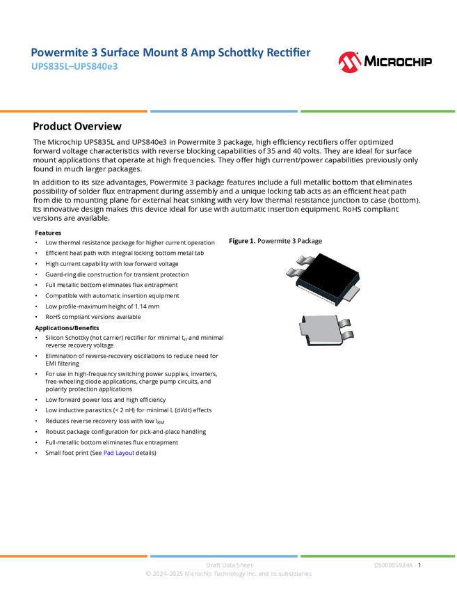 RF01102 Powermite 3 Surface Mount 8 Amp Schottky Rectifier