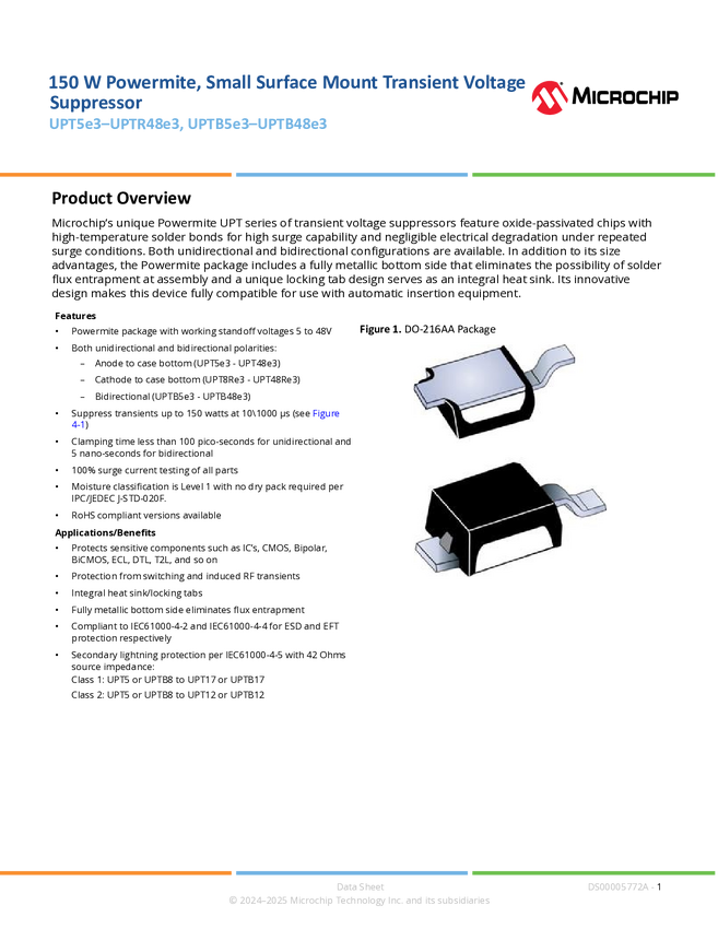 RF01103 150 W Powermite, Small Surface Mount Transient Voltage Suppressor