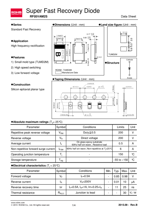Diode Fast Recovery Diode 200V 0.5A 2-Pin TUMD T/R