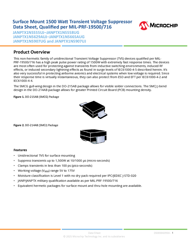 RF01357 Surface Mount 1500 Watt Transient Voltage Suppressor Data Sheet