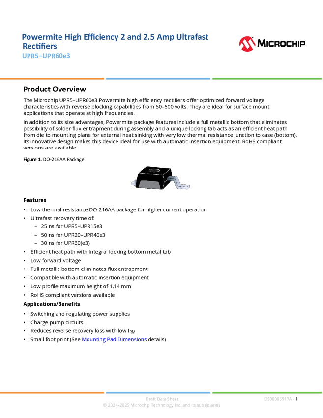 RF01312 Powermite High Efficiency 2 and 2.5 Amp Ultrafast Rectifiers