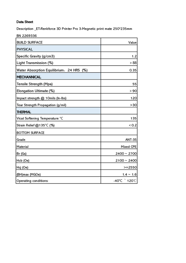 Płyta na wydruk Renkforce RF-4538672 Odpowiednie do: renkforce RF100 XL V3, Renkforce Pro 3, Renkforce Pro 6