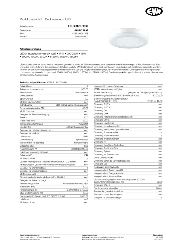 Lampa sufitowa LED EVN RF30150125 RF30150125 1550 lm biały