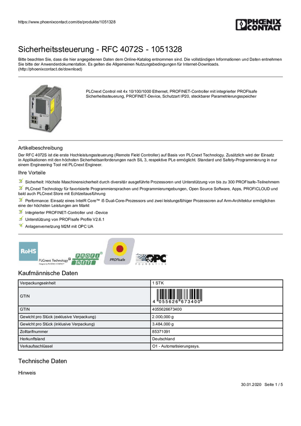Kontroler PLC Phoenix Contact RFC 4072S 1051328 24 V/DC