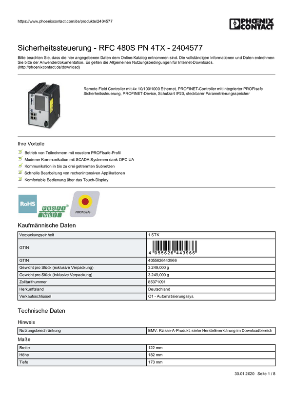 Kontroler PLC Phoenix Contact RFC 480S PN 4TX 2404577 24 V/DC