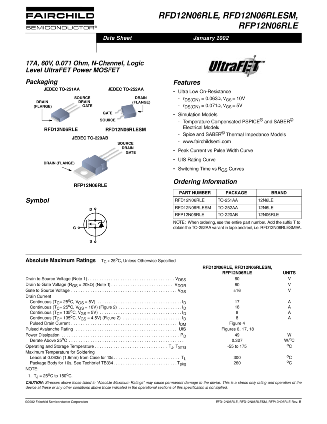 N-Channel UltraFET® Power MOSFET 60V, 17A, 71mΩ