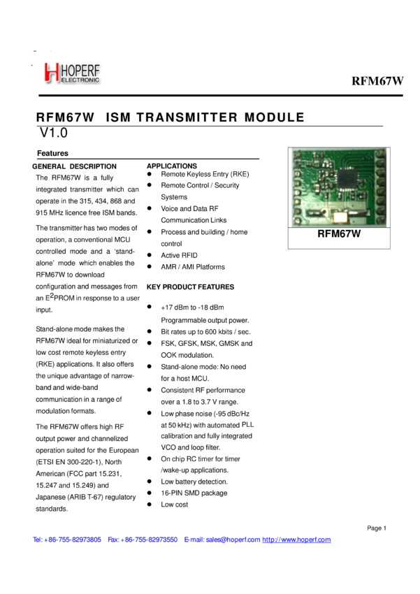 RFM67W-433S2