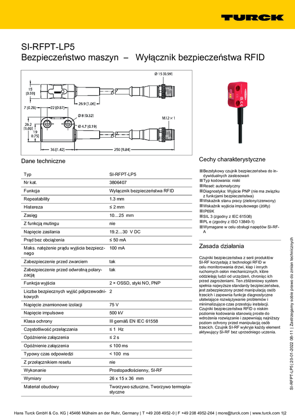 Turck 3806407 Wyłącznik bezpiecznikowy SI-RFPT-LP5, 1 szt.