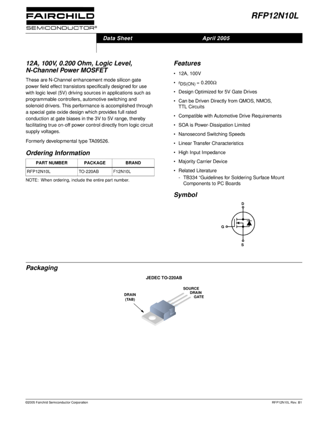 N-Channel Logic Level Power MOSFET 100V, 12A, 200mΩ