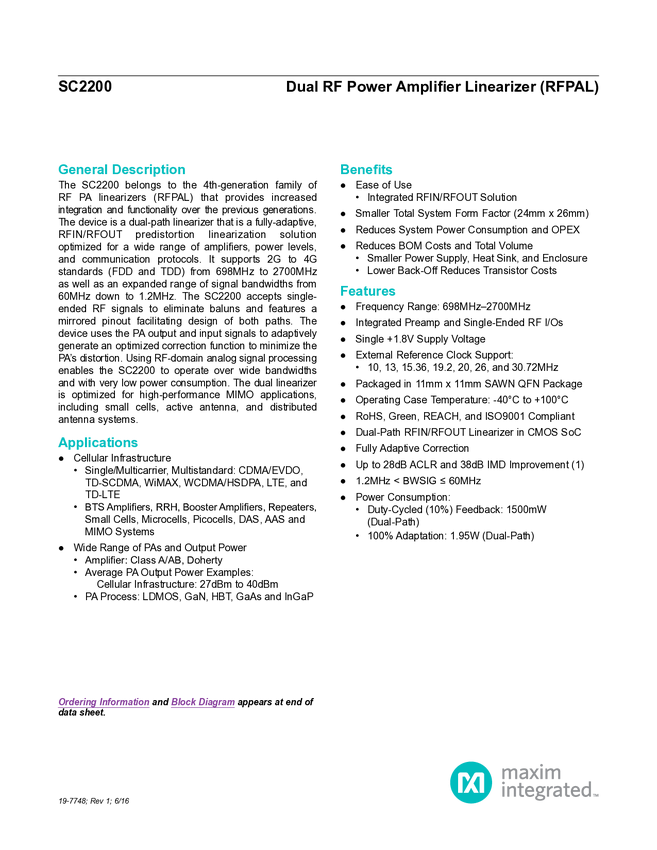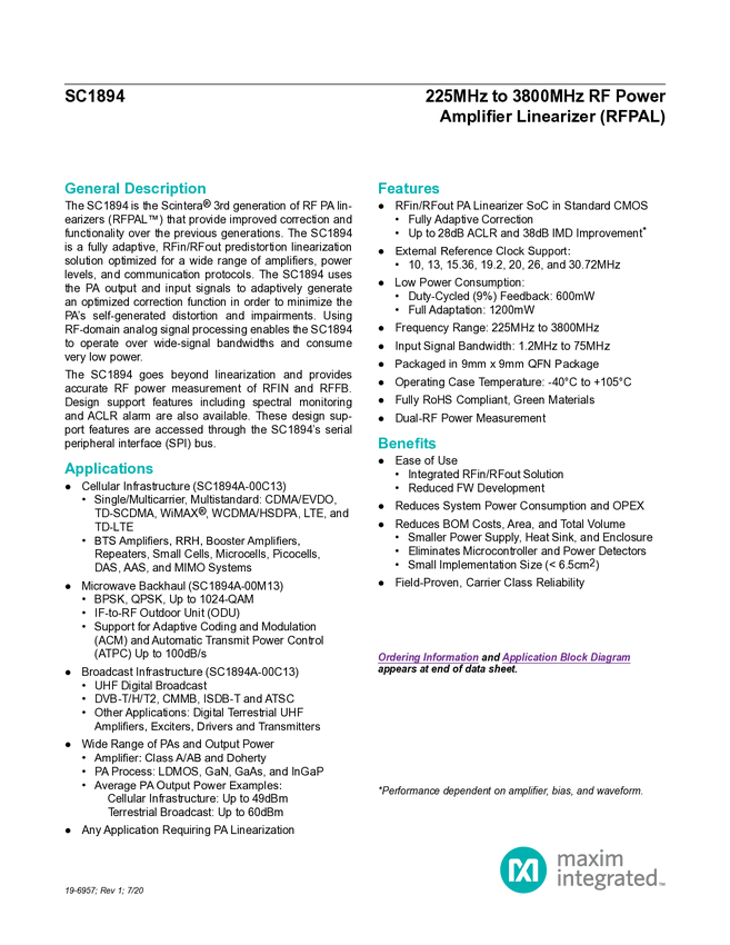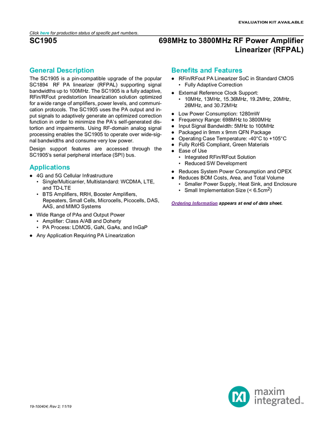 698MHz to 3800MHz RF Power Amplifier Linearizer (RFPAL)