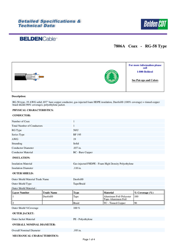 Belden 7806A Kabel koncentryczny Średnica zewnętrzna: 4.95 mm RG58 /U 50 Ω czarny Produkty w metrach bieżących