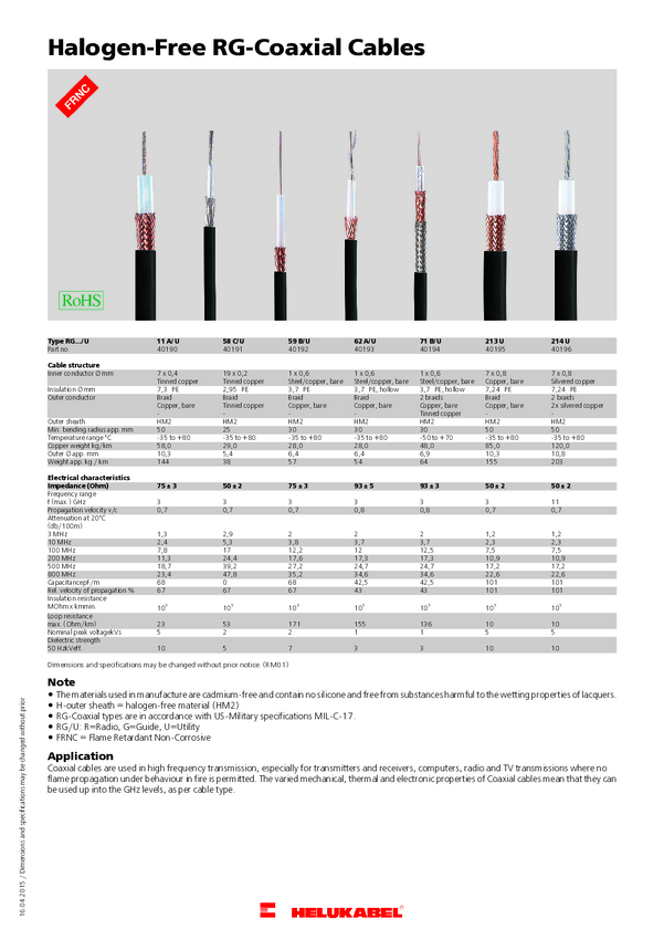 Helukabel 40191 Kabel koncentryczny Średnica zewnętrzna: 5.40 mm RG58 C/U 50 Ω czarny 100 m