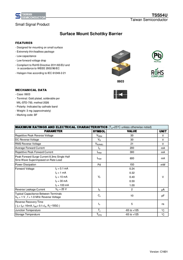 Dioda Schottky'ego Taiwan Semiconductor TSS54U RGG N/A N/A N/A