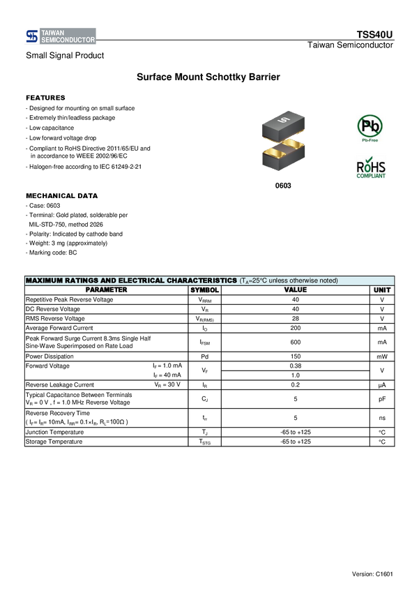 Dioda Schottky'ego Taiwan Semiconductor TSS40U RGG N/A N/A N/A U(RRM) 40 V