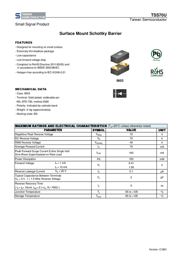 Dioda Schottky'ego Taiwan Semiconductor TSS70U RGG N/A N/A N/A U(RRM) 70 V