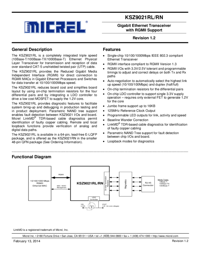 LAN8820/LAN8820i RGMII 10/100/1000 Ethernet Transceiver with HP Auto-MDIX Suppo (12/04/2013)