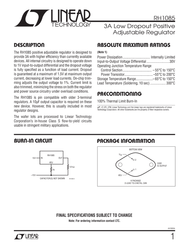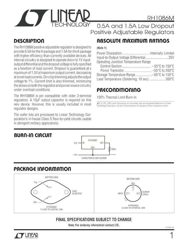0.5A and 1.5A Low Dropout Positive Adjustable Regulators