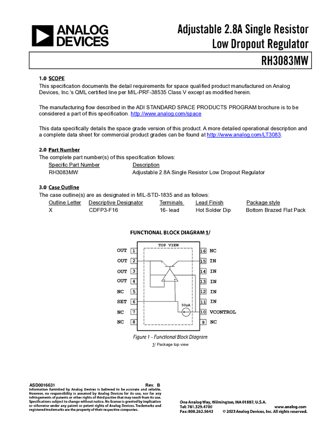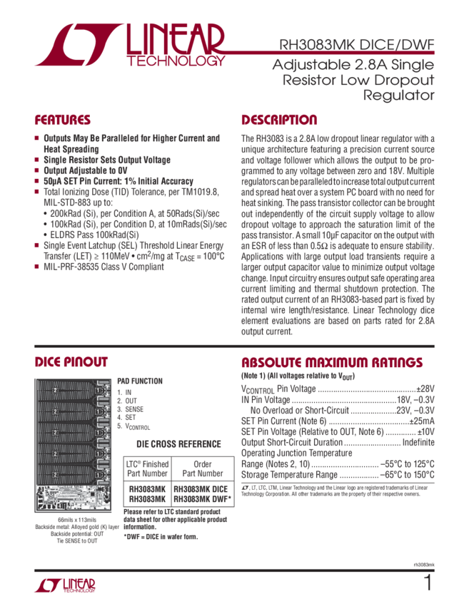 Radiation Hardened Adjustable 0.9A Single Resistor Low Dropout Regulator