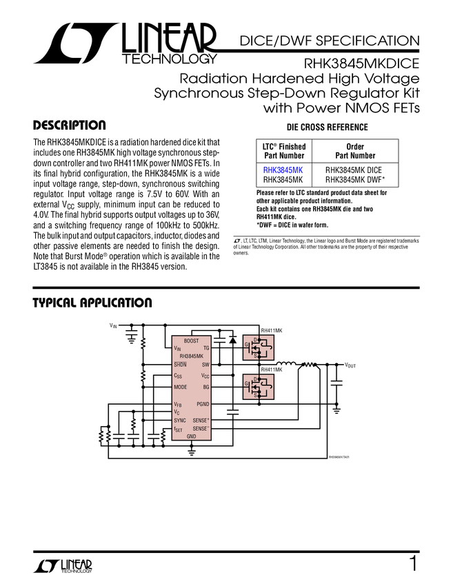 Radiation Hardened High Voltage Synchronous Current Mode Step-Down Controller with Adjustable Operating Frequency