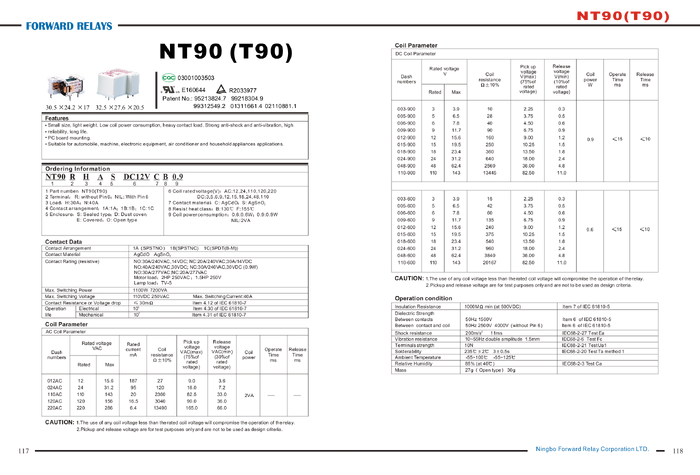 Przekaźnik; elektromagnetyczny; NT90-RHAS 24VDC CB; 24V DC; 30A; 240V AC; SPST-NO 1 styk zwierny; NF; = R40N3021851024, R40N-3021-85-1024, JQX105F-024D-1ZS, HF105F-1/024D-1HST; NT90RHASDC24VCB; 20505; RoHS