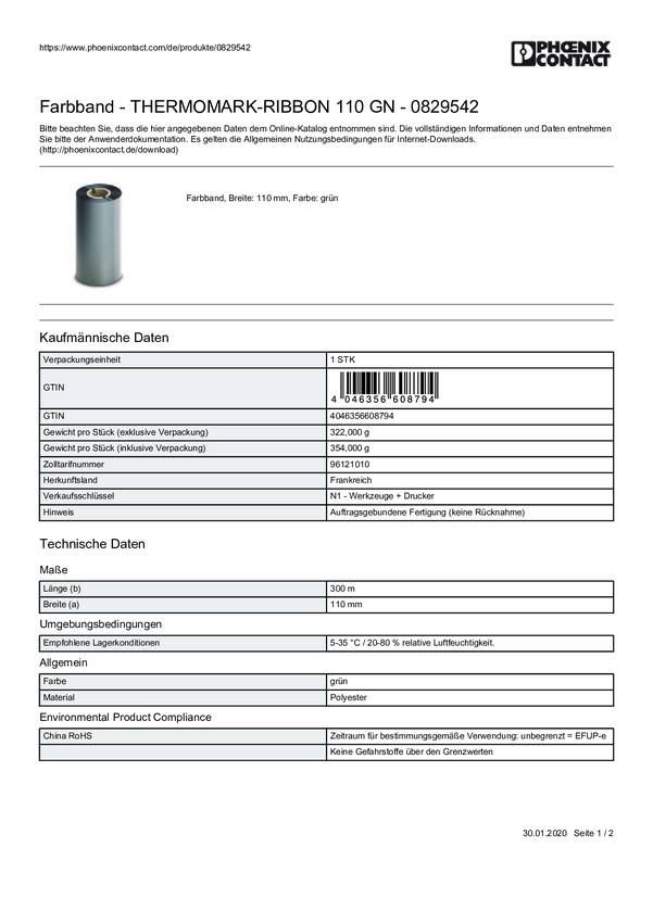 Taśma kolorowa do drukarki termotransferowej Phoenix Contact THERMOMARK-RIBBON 110 GN 0829542, 1 szt.