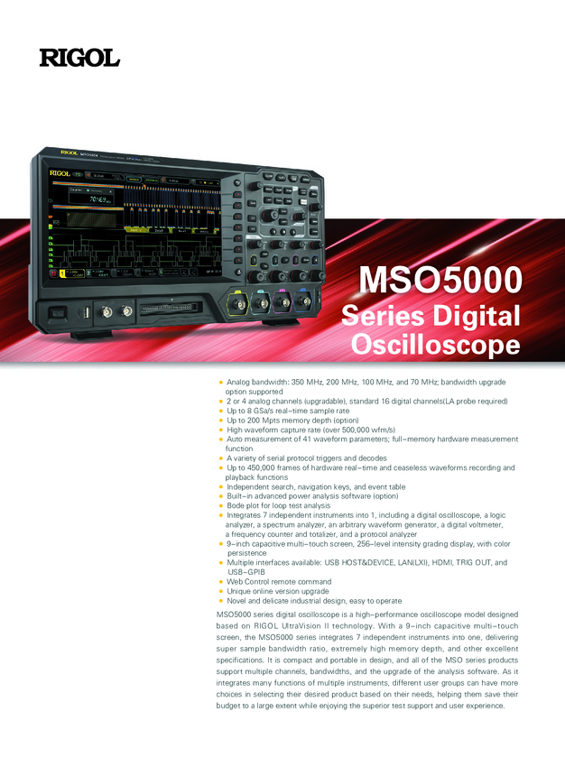 Oscyloskop cyfrowy Rigol MSO5354 350 MHz 8 GSa/s Kalibracja (ISO)