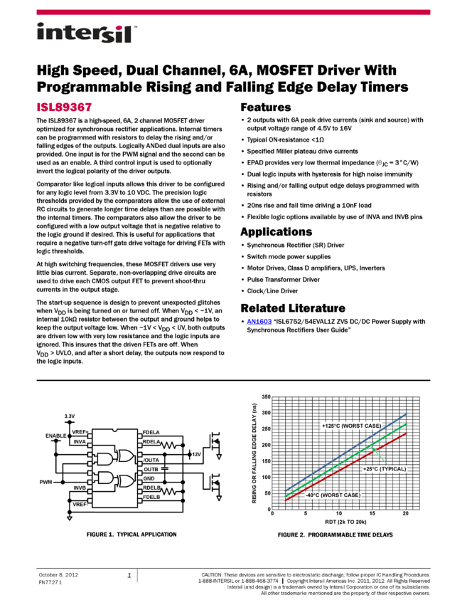 High Speed, Dual Channel, 6A, MOSFET Driver With Programmable Rising and Falling Edge Delay Timers