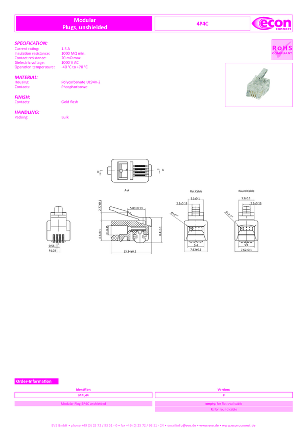 złącze męskie proste RJ10 econ connect MPL44R 1 szt.